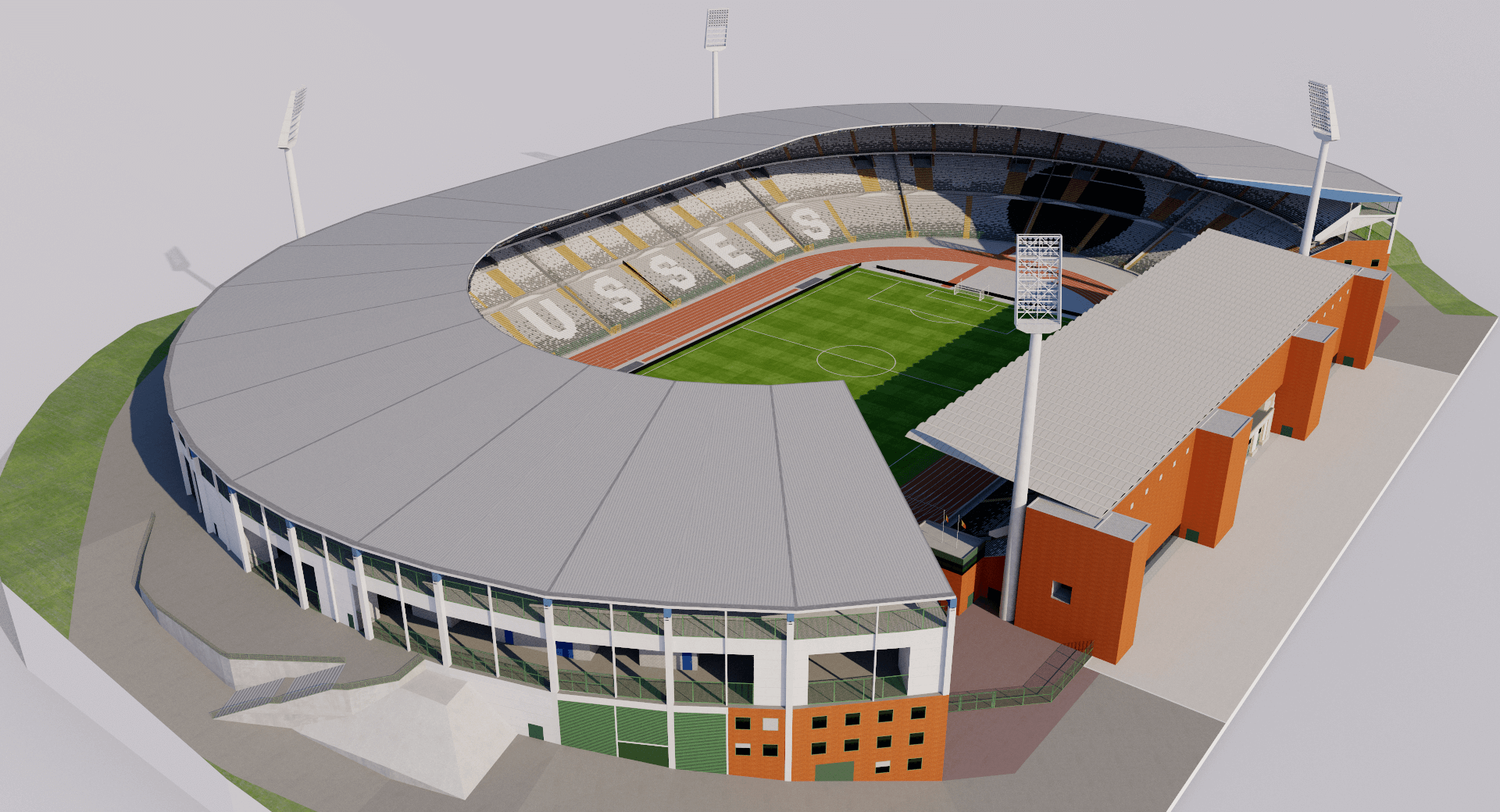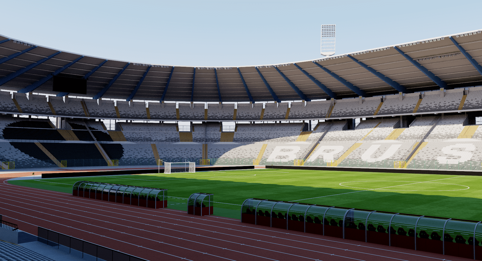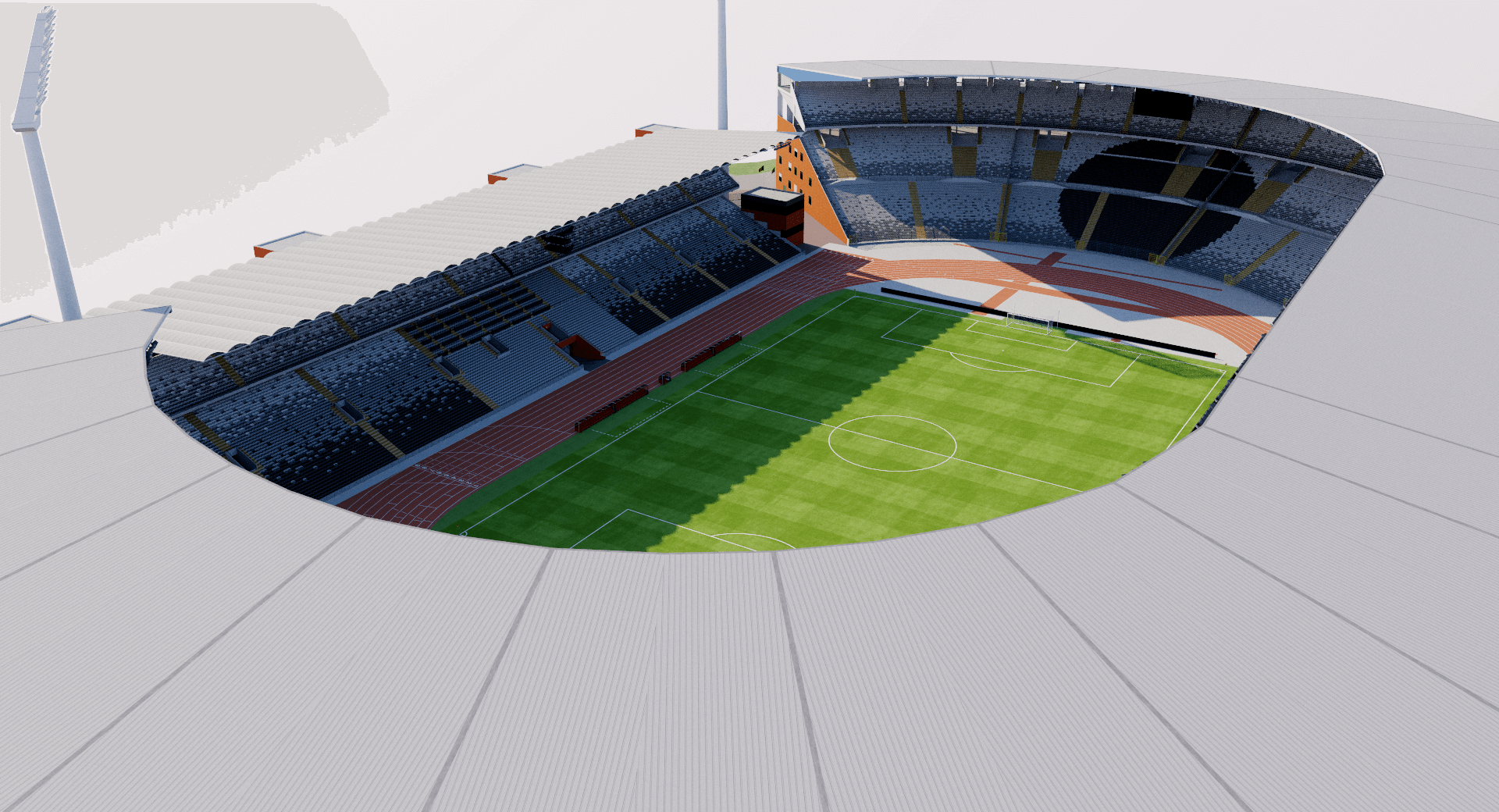 Starter model. Approximate dimensions. Bleachers and seats in 2D texture. Render setup not included.
