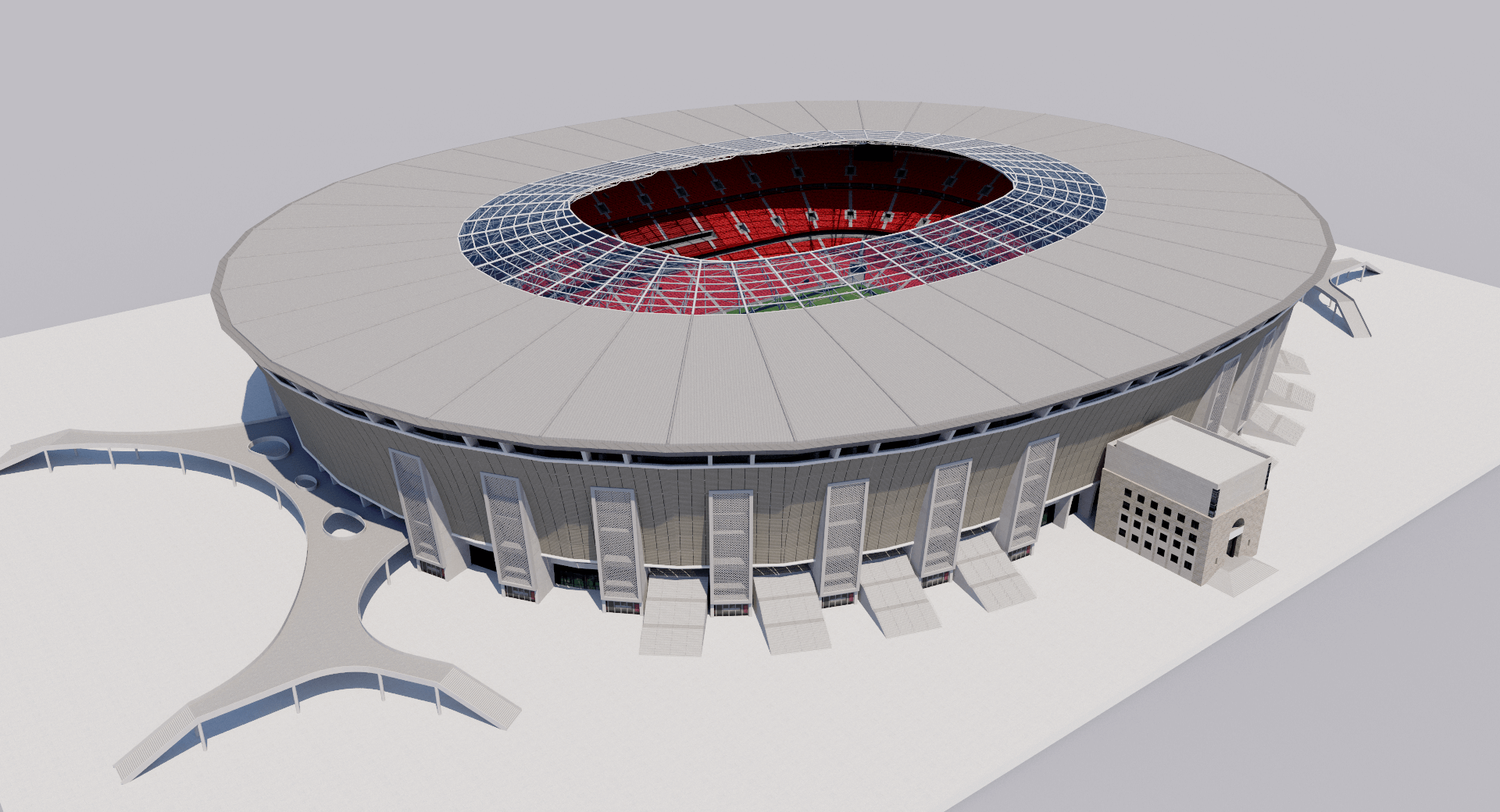 Starter model. Approximate dimensions. Bleachers and seats in 2D texture. Render setup not included. Model updated in 2025.